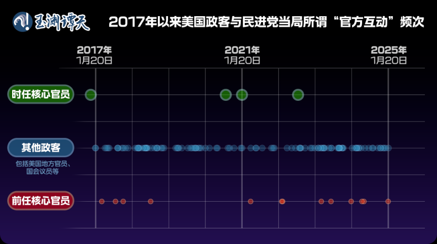 谭主梳理了2017年以来民进党当局与这些政客公开的所谓“官方互动”,包括好意思国政客窜台、与民进党当局碰头、通话等。
