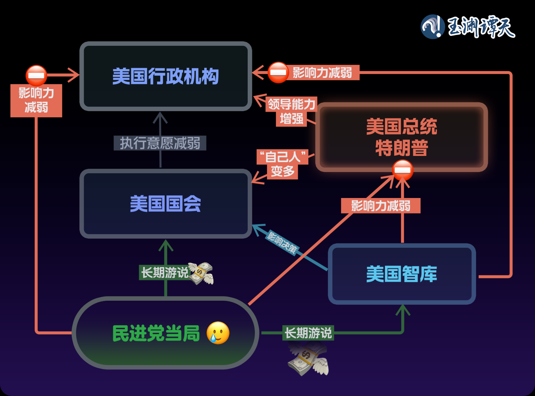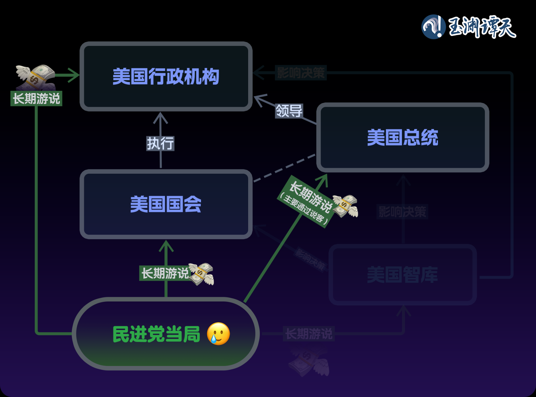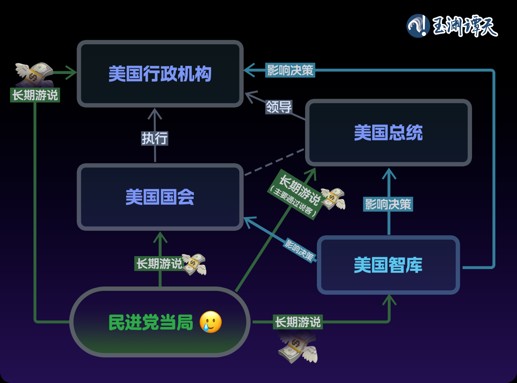 不错看到,民进党和好意思国智库之间存在着永久的游说和资助关系,这些智库,又影响着好意思国国会、好意思国行政机构和好意思国总统本东说念主的有计算。