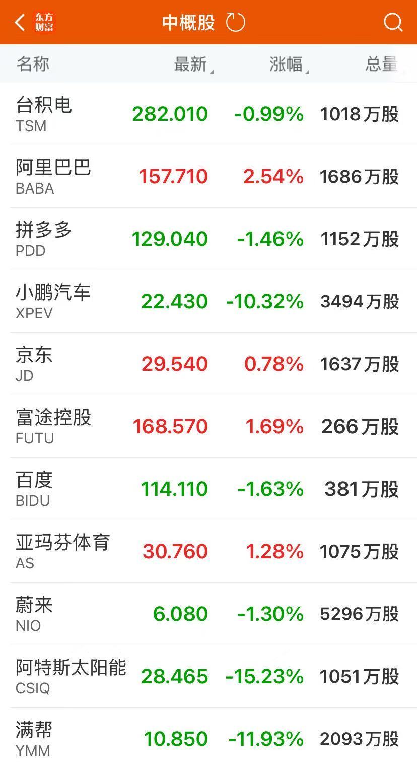 热点中概股多量着落,纳斯达克中国金龙指数跌1.21%,京东涨0.72%,拼多多跌1.46%,蔚来汽车跌1.30%,小鹏汽车跌10.32%,理念念汽车跌4.75%,哔哩哔哩跌0.23%,百度跌1.63%,网易跌1.71%,腾讯音乐跌0.16%,小马智行跌6.16%。